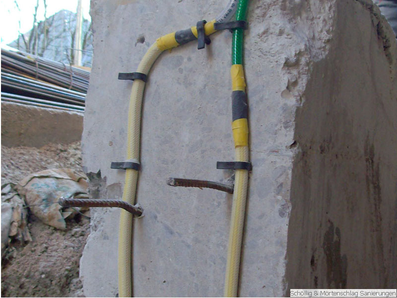 Wir verpressen auch bauseits eingebaute Injektionsschläuche.