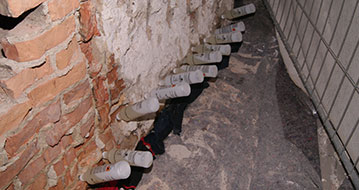 Aufsteigende Feuchtigkeit ist der Feind aller Bauwerke. Bedingt durch Grund- und Sickerwasser sowie hohe Bodenfeuchte gelangt bei fehlender oder defekter Mauerwerksabdichtung Feuchtigkeit durch die im Mauerwerk befindlichen Kapillaren vom Kellerbereich bis hoch hinauf in die ersten Wohngeschosse. Die Errichtung einer nachträglichen horizontalen Kapillarwassersperre ist hier zwingend erforderlich.